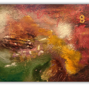 Je peins à l'huile, presque toujours accompagnée de techniques mixtes (encre, acrylique, collage, feuilles d'or, matières naturelles comme des fleurs ou du sel).